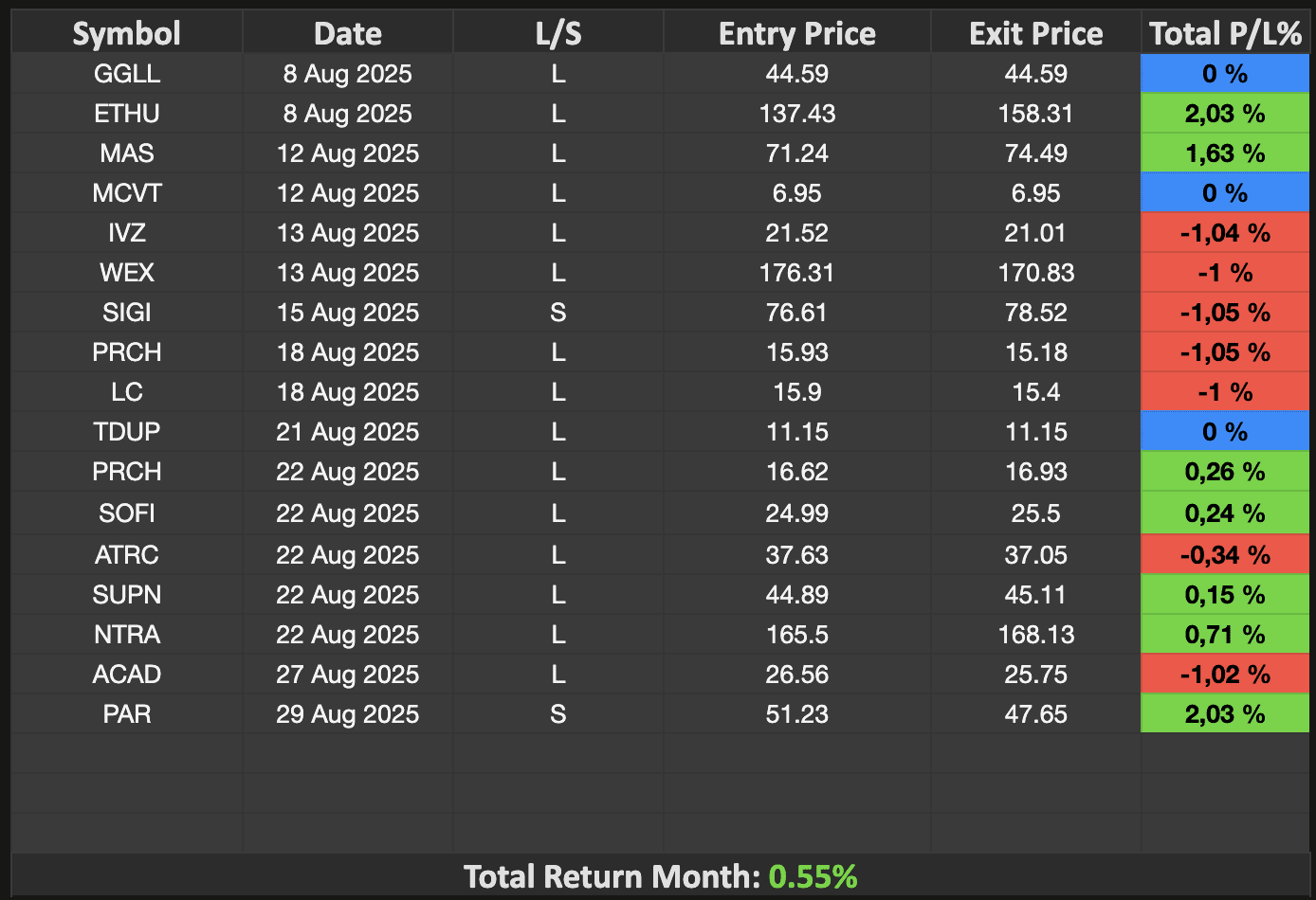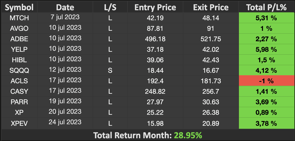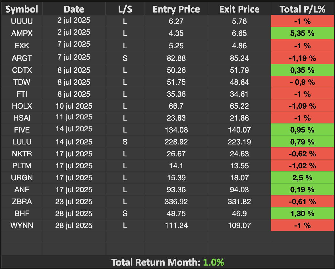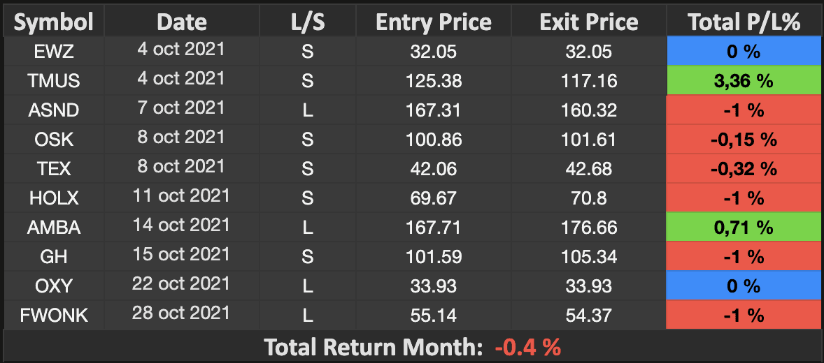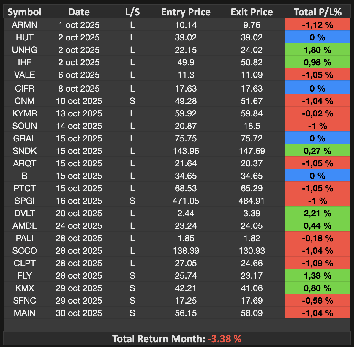 Every single signal sent and executed, Felipe's performance trading the Liberty Signal System.