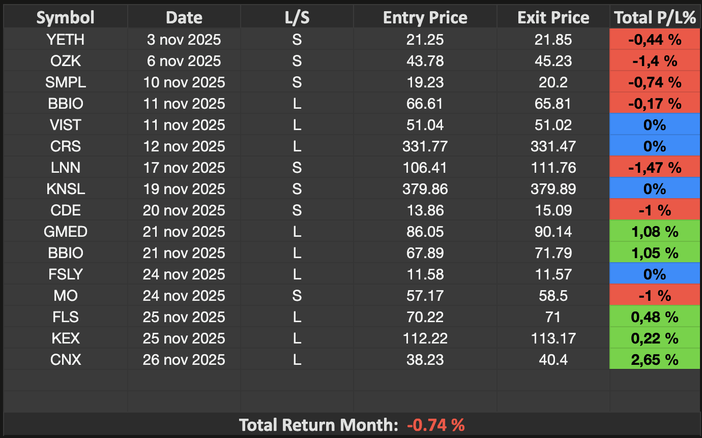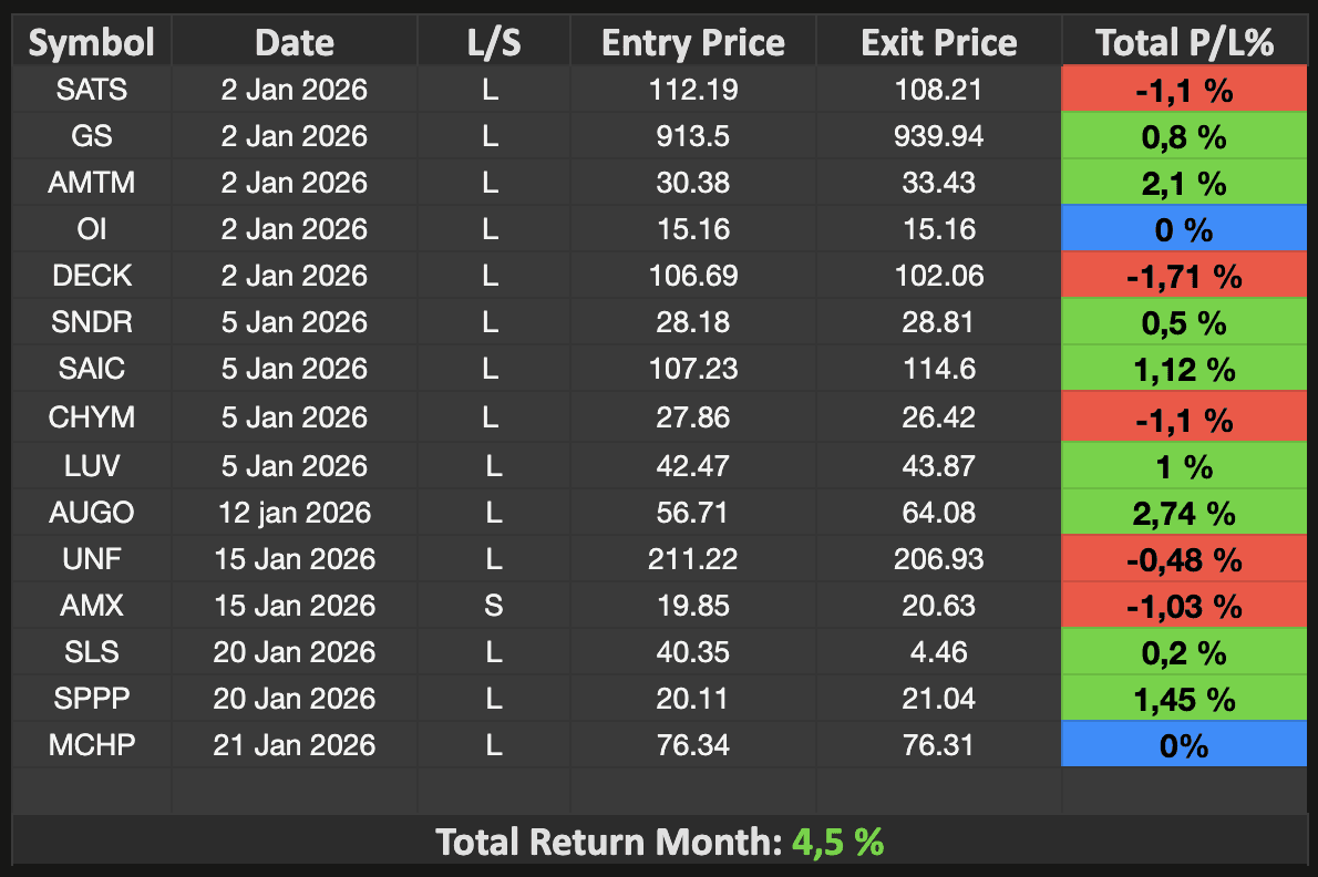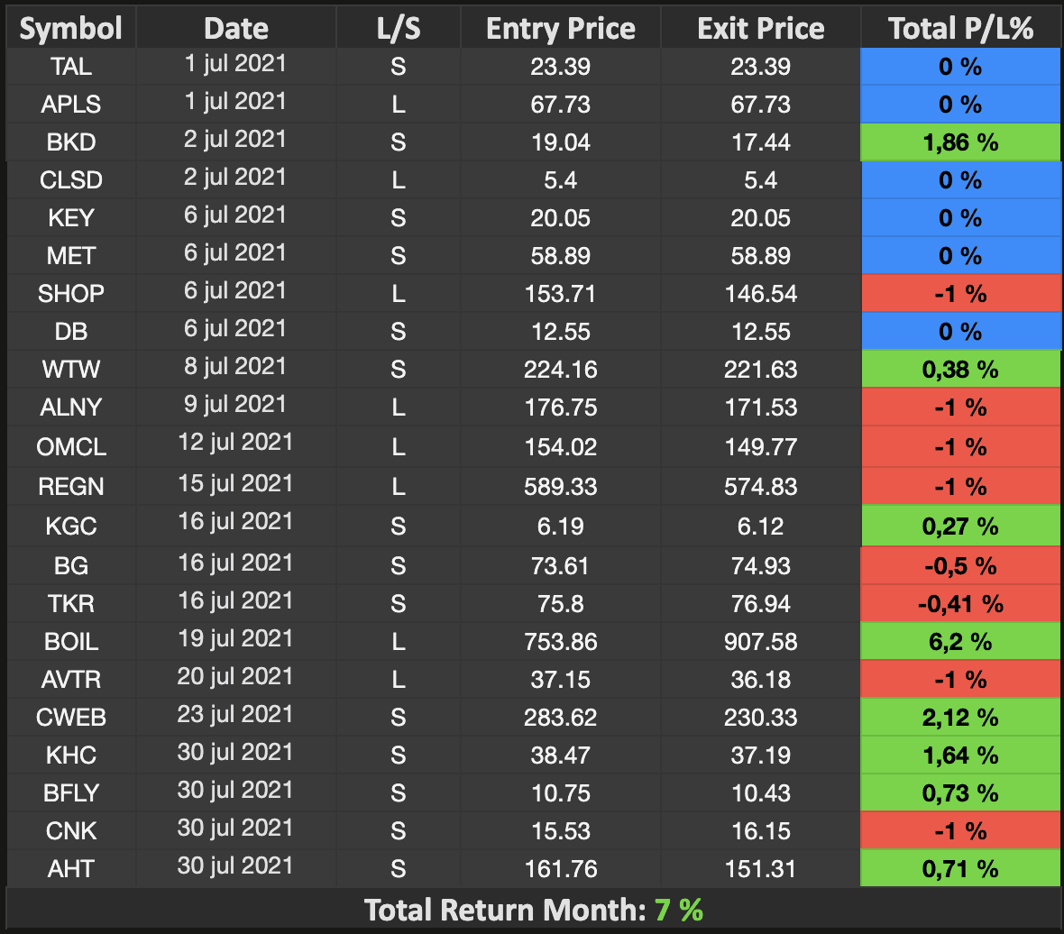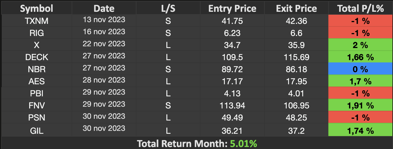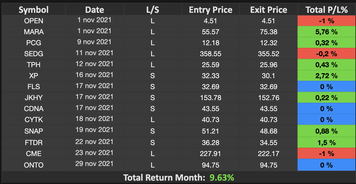 Every single signal sent and executed, Felipe's performance trading the Liberty Signal System.