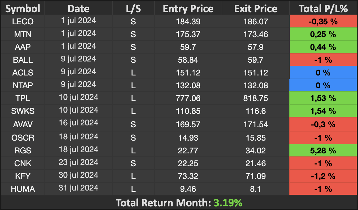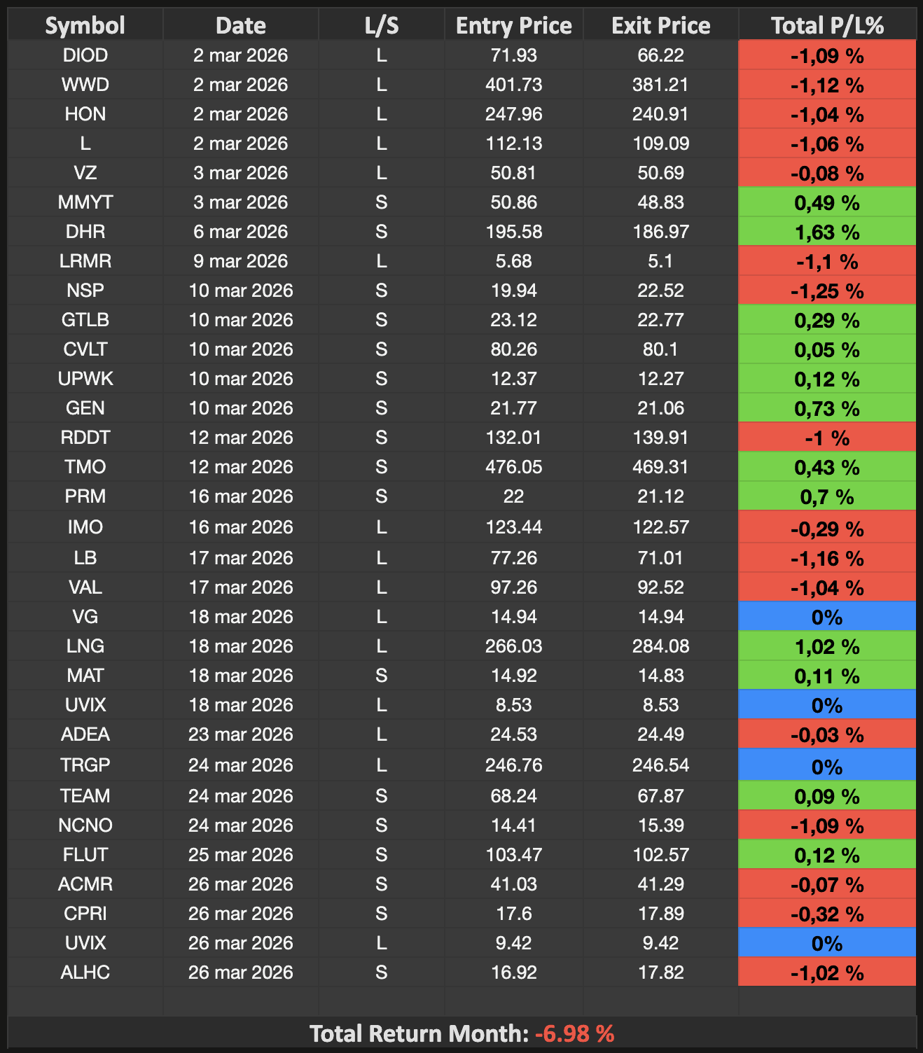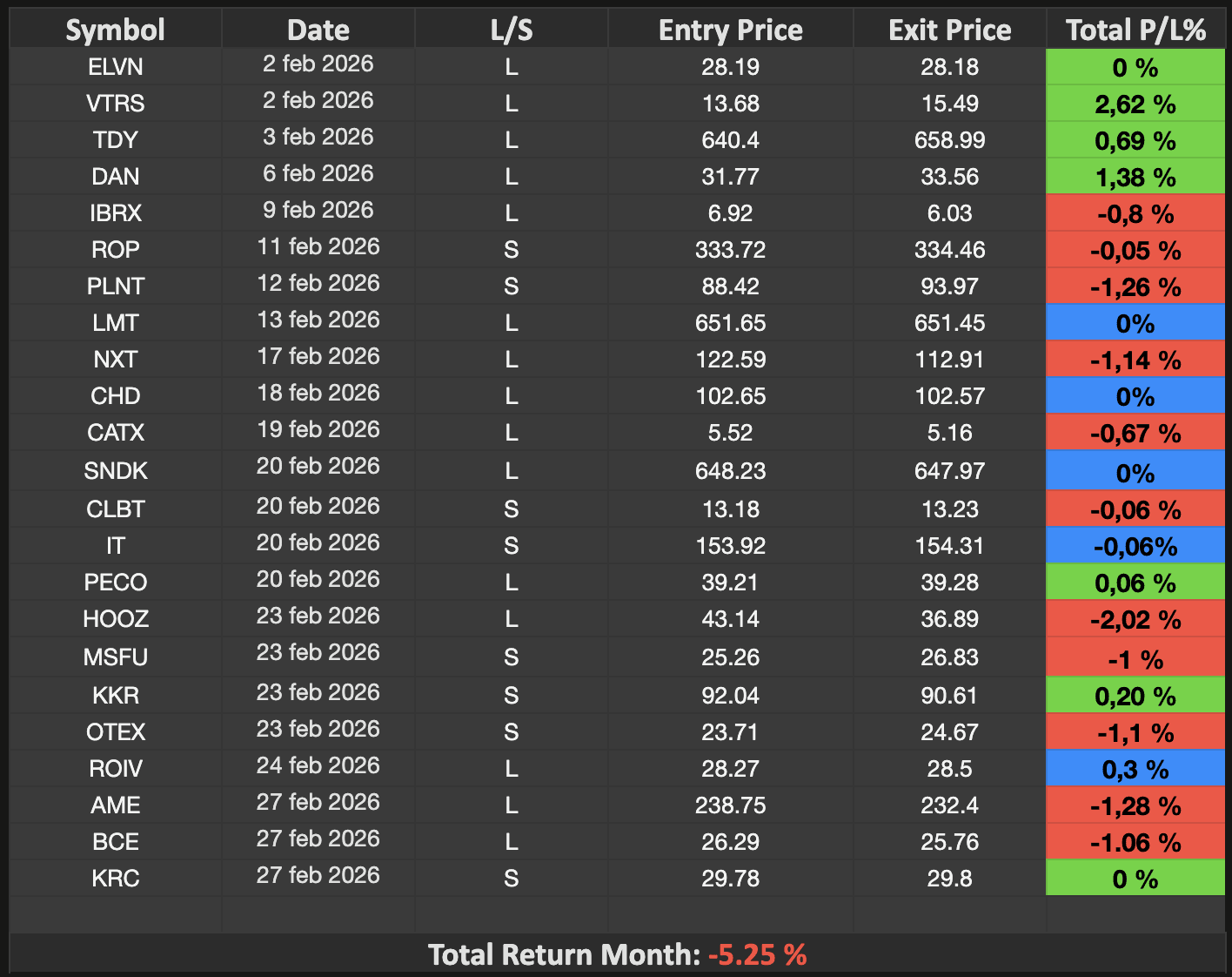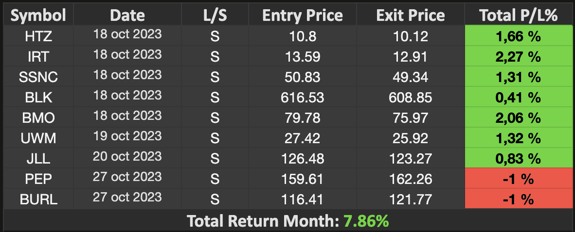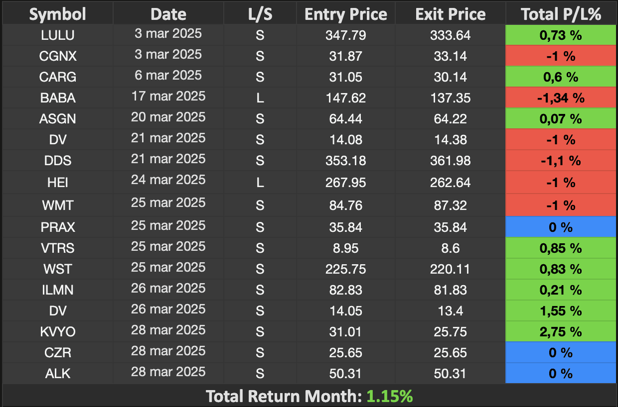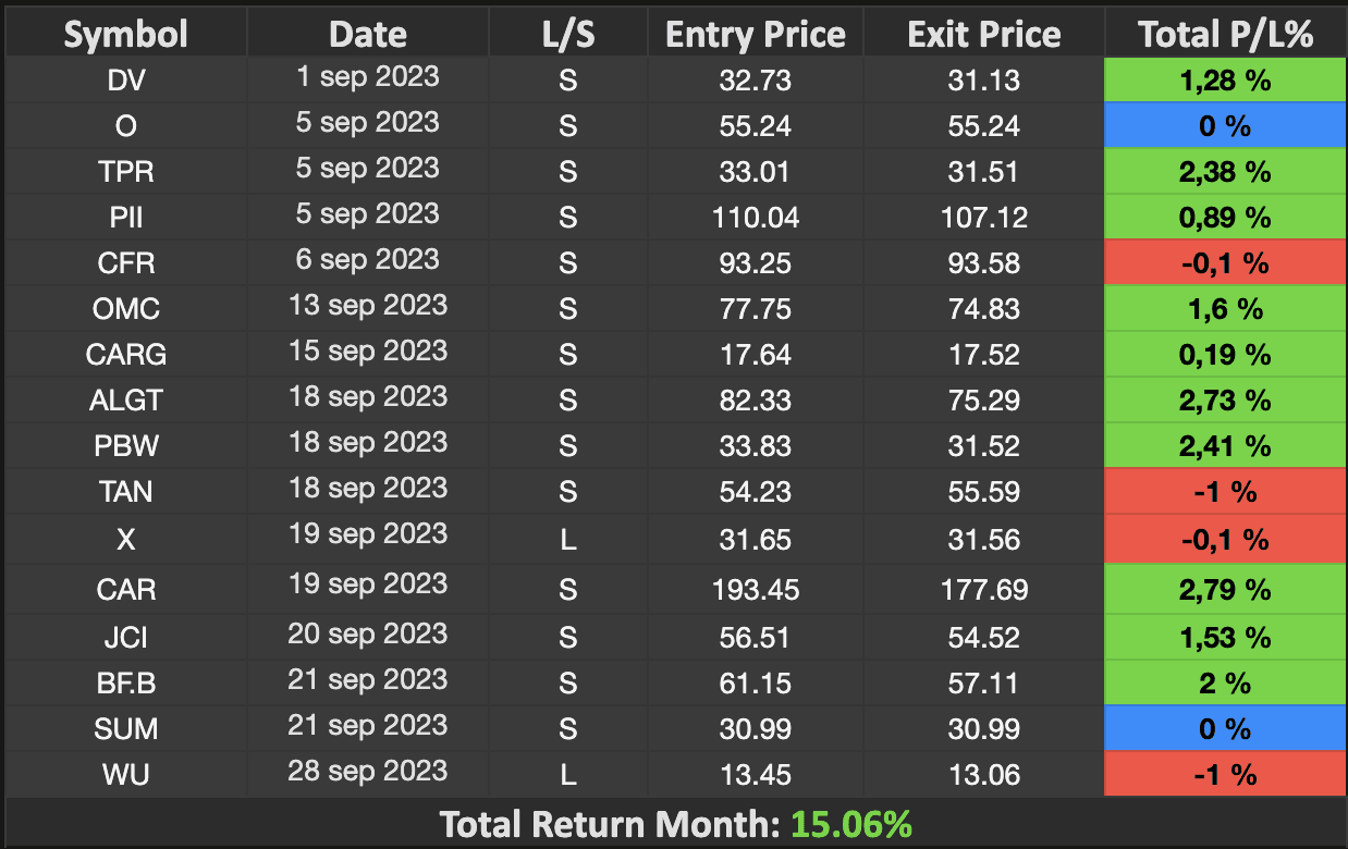 Every single signal sent and executed, Felipe's performance trading the Liberty Signal System.
