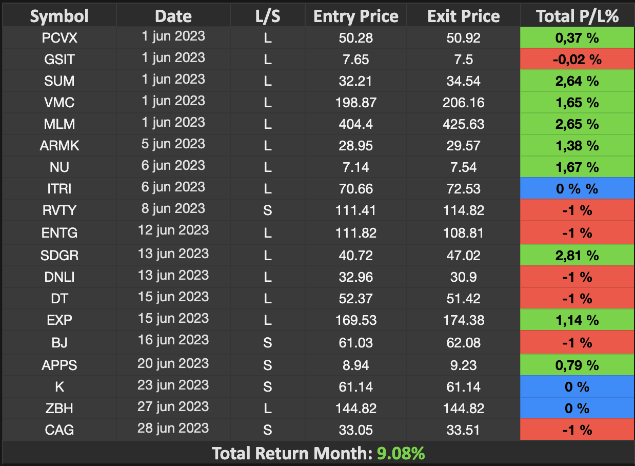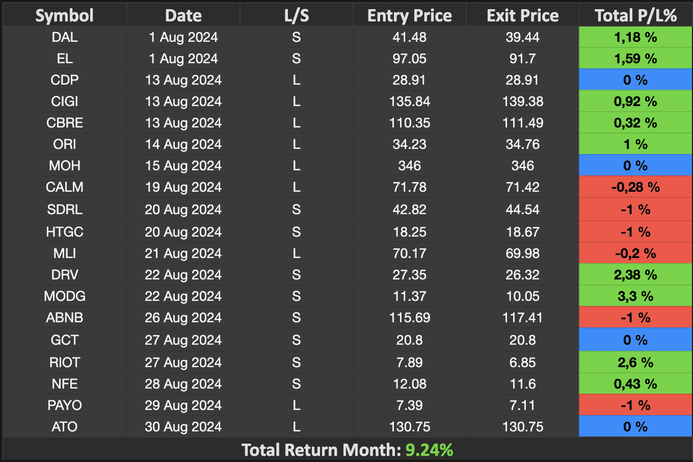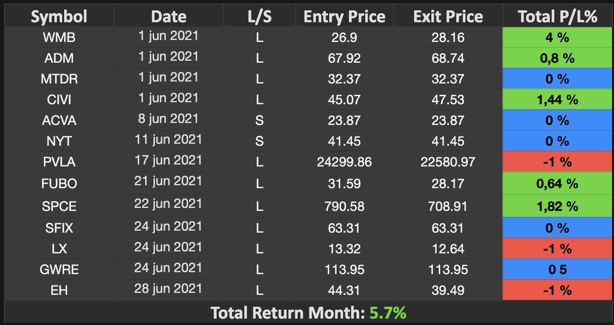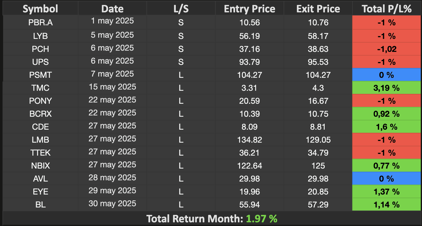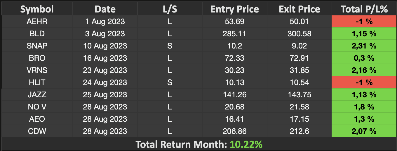 Every single signal sent and executed, Felipe's performance trading the Liberty Signal System.