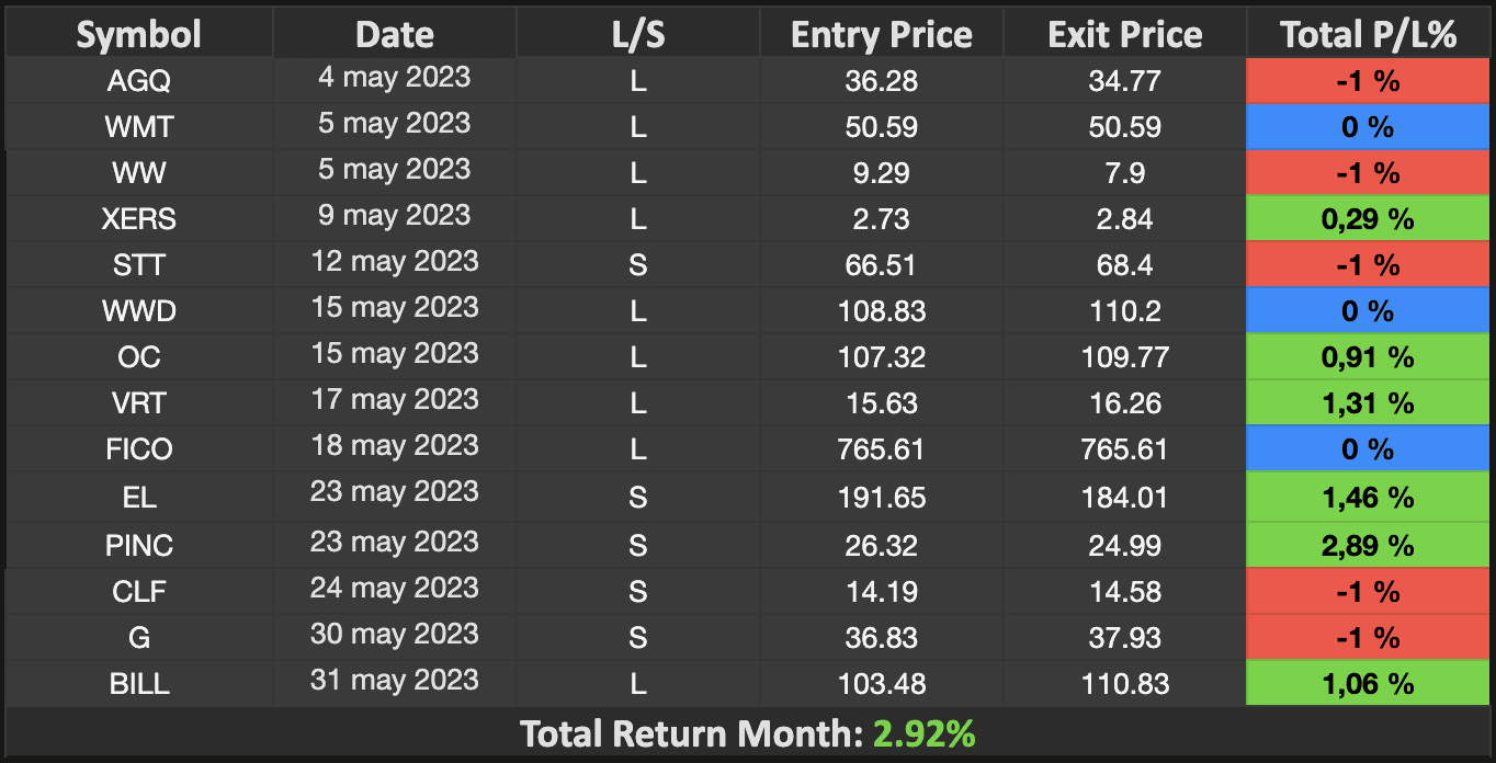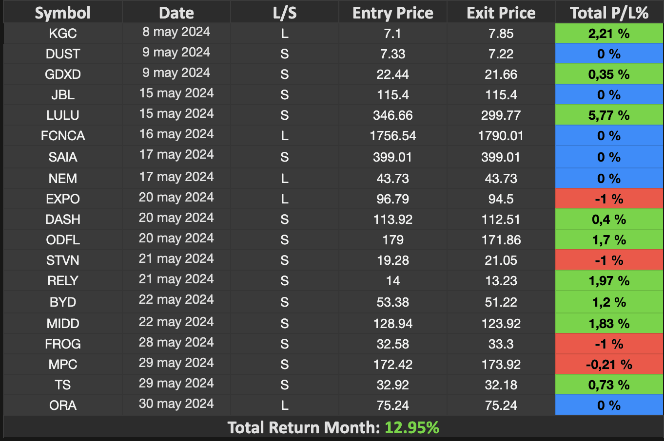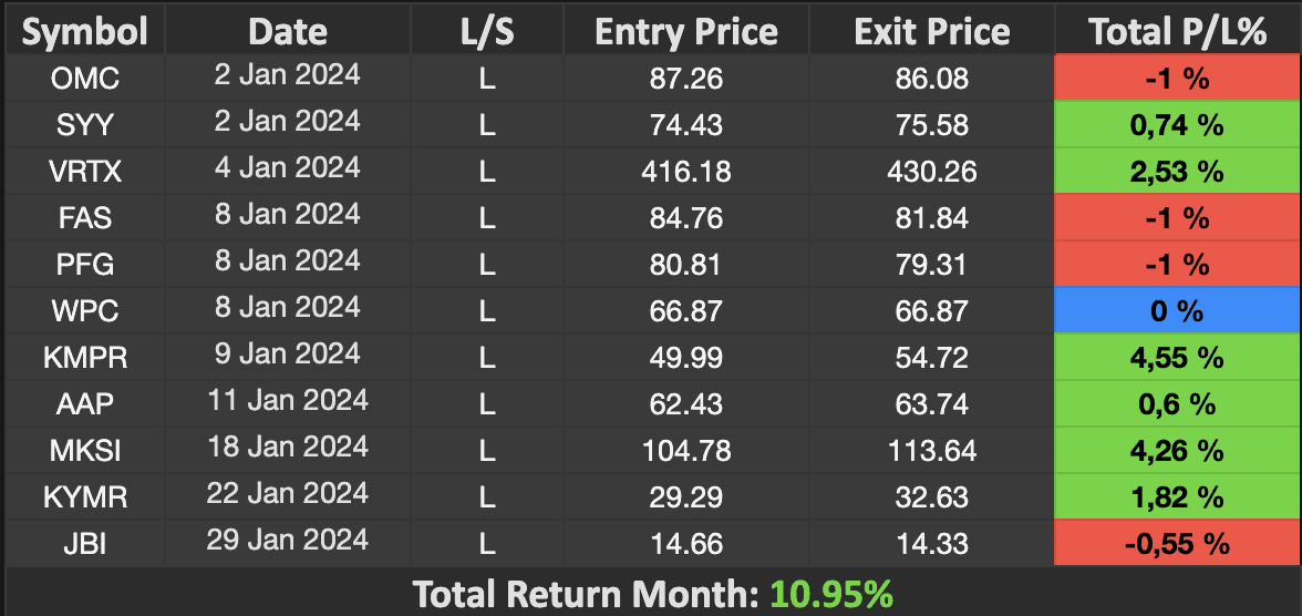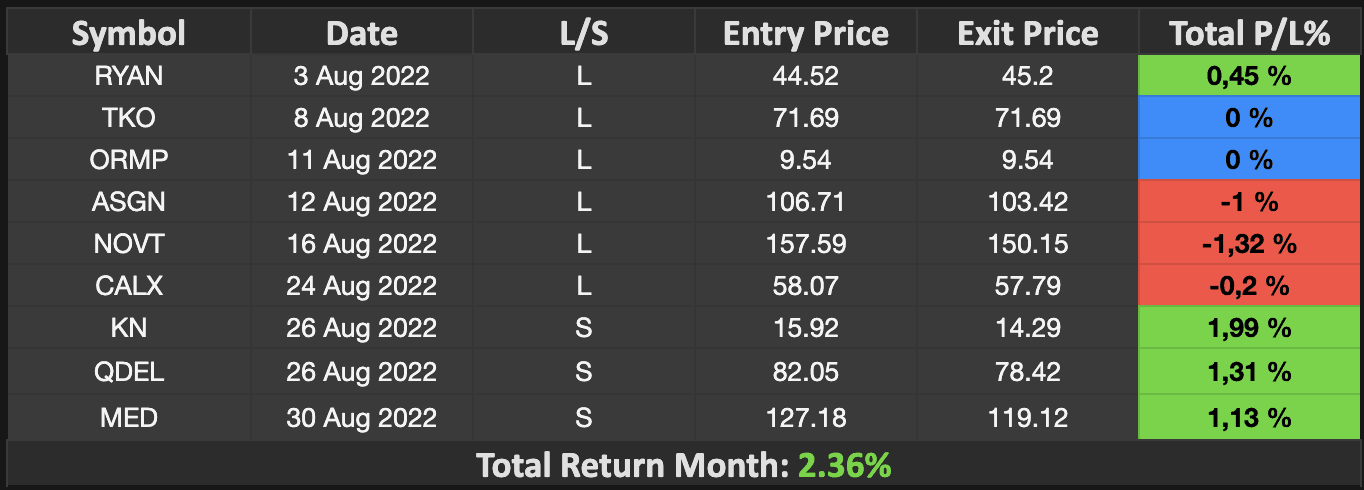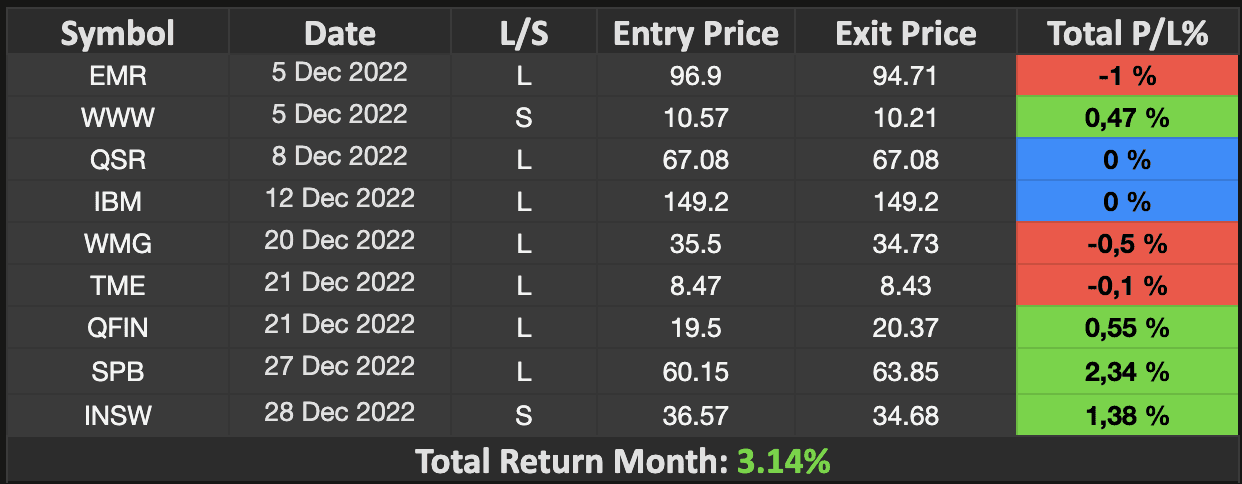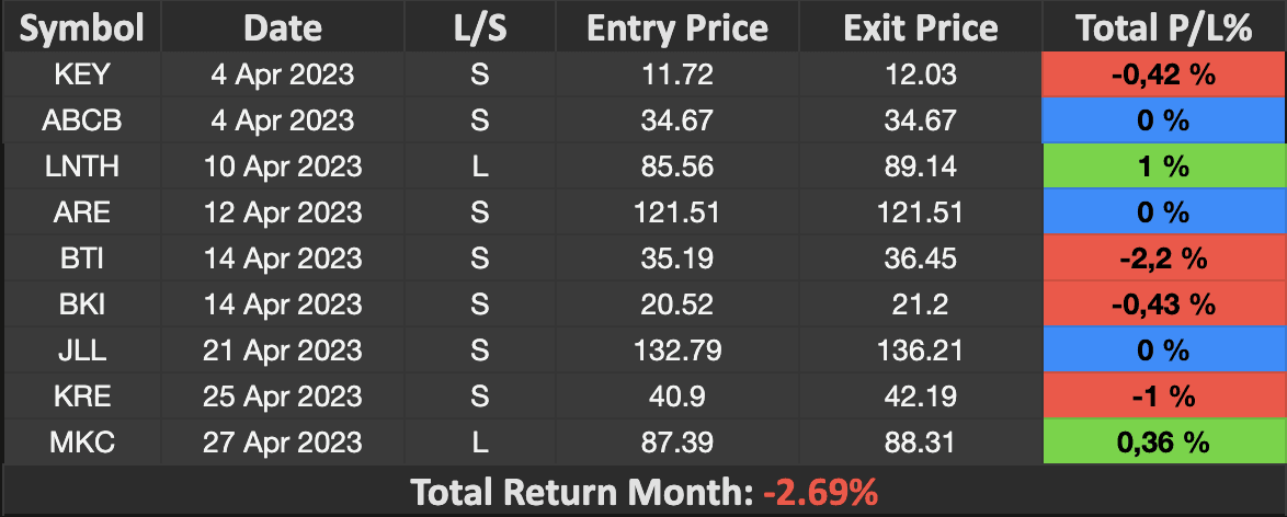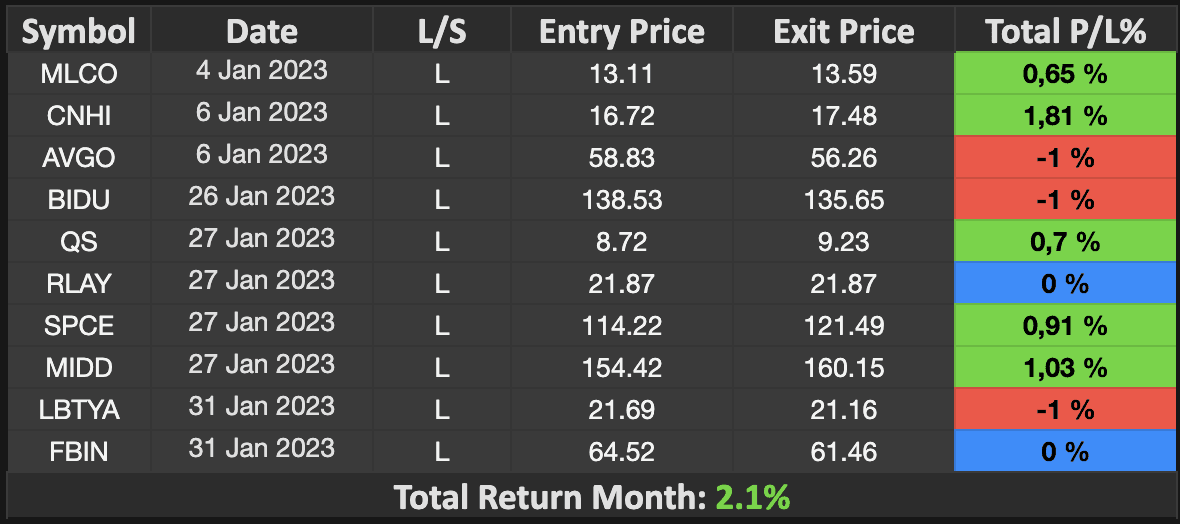 Realized Average Risk:Reward Ratio: 1: 1,35
